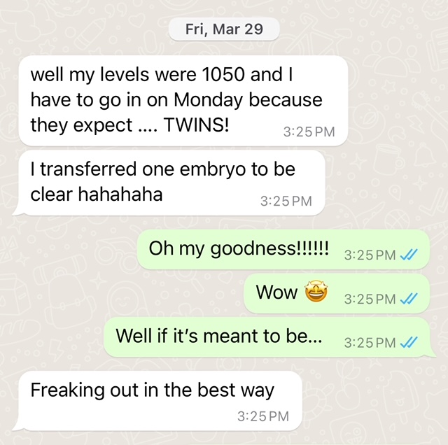 "It has meant so much to have an ally like Kathryn as someone who deeply understands the pain of this epic isolating journey. I was once afraid that my chances of having a baby were slim over 40. But now I know that my determination to have a baby is stronger than my "chances" because I am MEANT to BE a MOM!" (Lorna is currently 25 weeks pregnant at 44.)