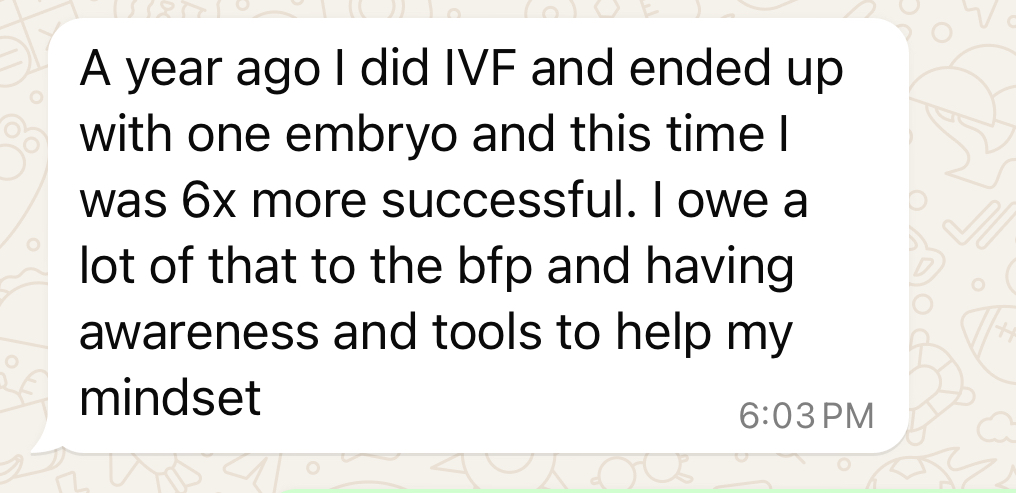 My journey to my daughter lasted 4 years. But there's no doubt in my mind that it would've taken much longer, and been wayyy more expensive (and trust me, it wasn't cheap)if I hadn't learned the tools I now teach in the BFP.